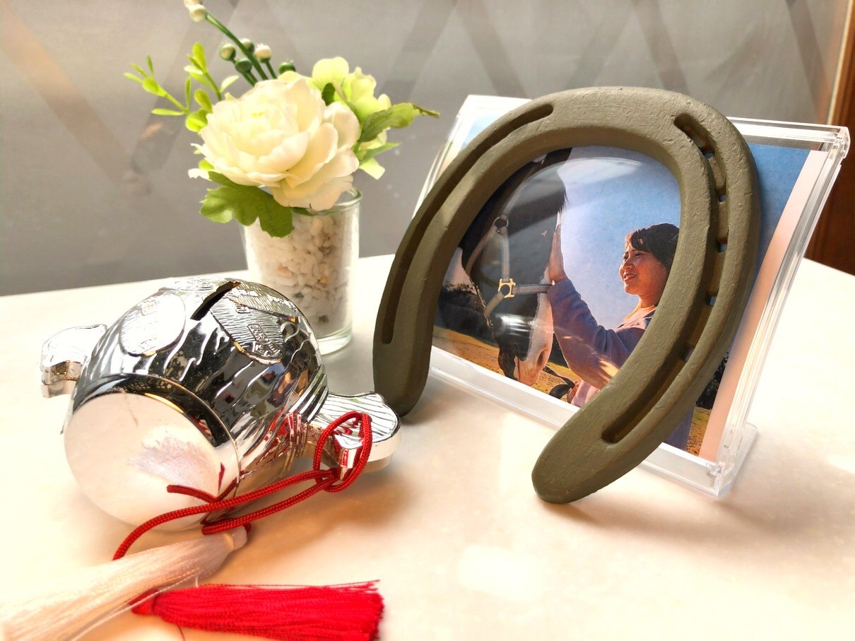 アヴニールファーム所属の、サラブレッド3頭の使用済み蹄鉄をかわいいカラー塗装し、販売しております。蹄鉄は、ヨーロッパ地方では古くから魔除け効果があるとされ、家や店舗などの玄関口に飾ると良いとされております。この機会に可愛く飾ってみてはいかがでしょうか?販売は、ネット販売サイトの、BOOTH内にて販売しております。当ホームページの最下部にあるリンク先(インテリア蹄鉄販売サイト)をクリックもしくは、インターネットにて、BOOTHアヴニールファームと検索して下さい。掲載に無いカラーも多数用意してますので、御希望のカラーが見つからなかった方は、まずは問合せ下さい。尚、6月12日までの売上金に関しましては、売上金の30%を現在公開中のクラウドファンディングに使用させていただきます。以降に関しましては、引退馬・養老馬に関するクラウドファンディングの他のプロジェクト支援に活用させていただきます。